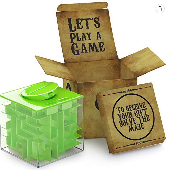 Aunque lo lógico seria pensar que dentro de ese laberinto tanto nosotros como a la persona que se lo regalaríamos pensaría que dentro hay dinero;